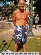In the pictures on this page you will notice that the lean body types for men are in the 11-15% range. For women 18-24% body fat is desirable. Being very lean is the best way to promote longevity. An extra 10 pounds can age us dramatically in appearance and also promotes disease later in life. The book "Lean Genes" shows you how to set the goal of "lean" and reach a healthy BF% in the shortest possible time. |
